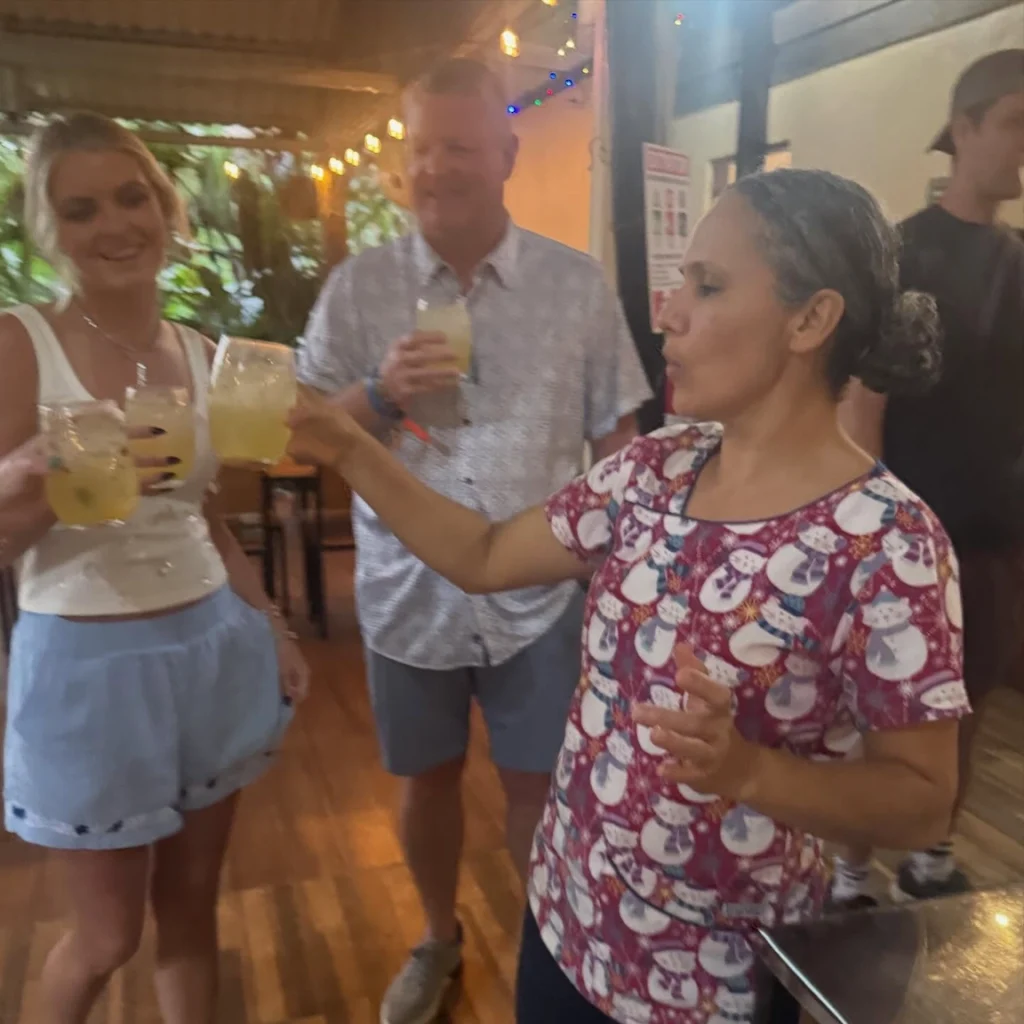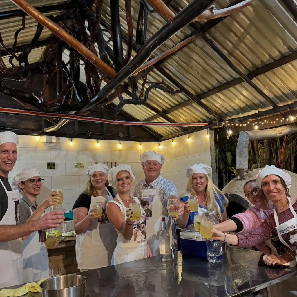 As if the setting couldn’t get more memorable, we spotted the resident sloth lounging peacefully in the trees above us. This was a moment that felt straight out of a nature documentary. To top it off- she is most likely “with sloth!” From the garden, we moved into their outdoor kitchen- an open-air space the family uses every single day. This wasn’t a restaurant or a staged cooking class; it was their real kitchen, where meals are shared, stories are told, and everyday life unfolds. Cooking alongside them in this space made the experience feel incredibly personal and meaningful. With fresh ingredients and plenty of laughter, we rolled up our sleeves, mixed the freshest mojitos I’ve ever tasted, and cooked an absolutely incredible meal together. Every dish felt like a celebration of Costa Rican culture – simple, fresh, and full of heart.